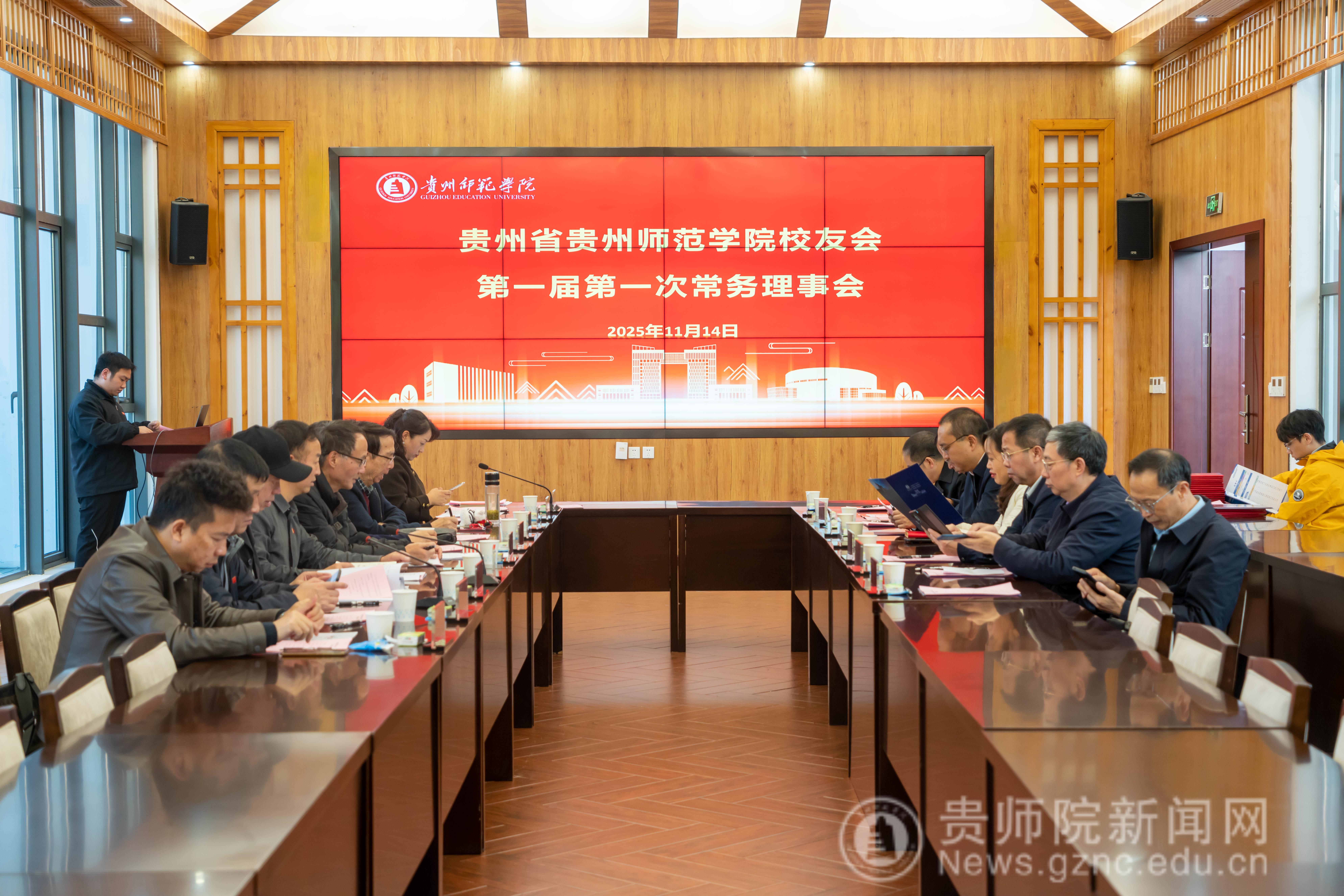 本网讯 11月14日,贵州省贵州师范学院校友会第一届第一次常务理事会以线上线下相结合的方式,在贵州师范学院印山书院山水讲堂召开。校友会会长郁钟铭主持会议,肖开玉、吴坤跃、李朝纲、冯银海等12位常务理事出席,陈亦桥、杨成友、银兴贵、秦红平等列席会议。监事唐前进以视频方式列席会议。